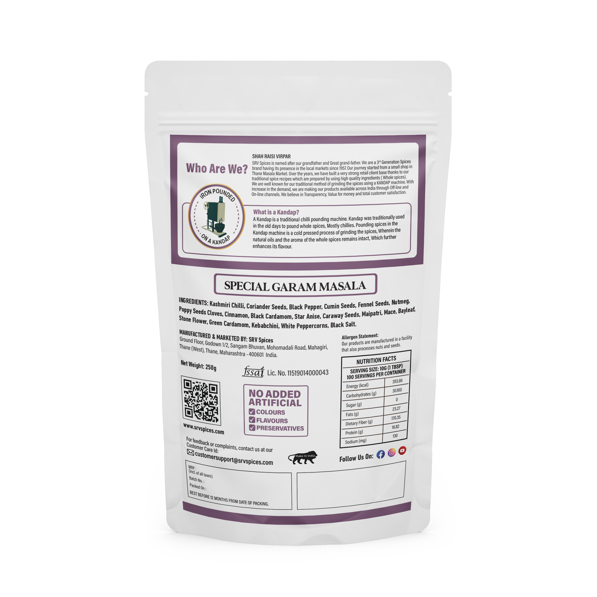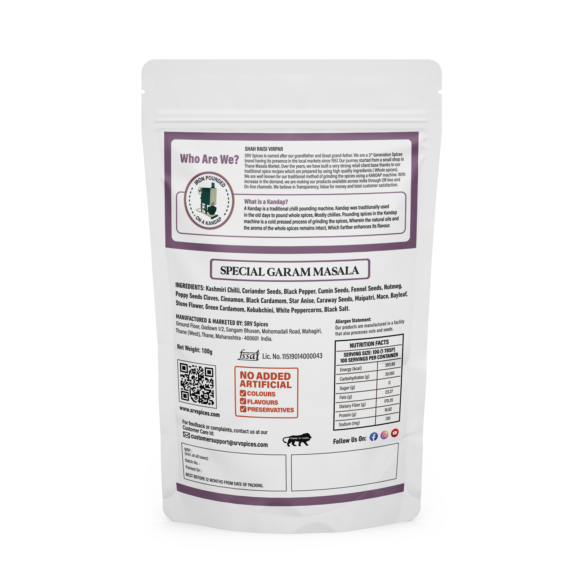 Garam Masala is best stored in a cool and dry place in a tightly sealed container. Our products are available in zip lock pouches for longer shelf life and to preserve quality, taste and aroma of the product